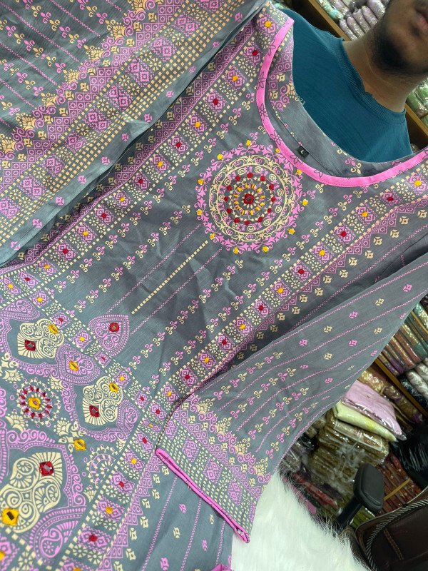 গলায় এবং বডিতে এম্ব্রয়ডারি কাজ করা ।100%কোয়ালিটি ড্রেস ।