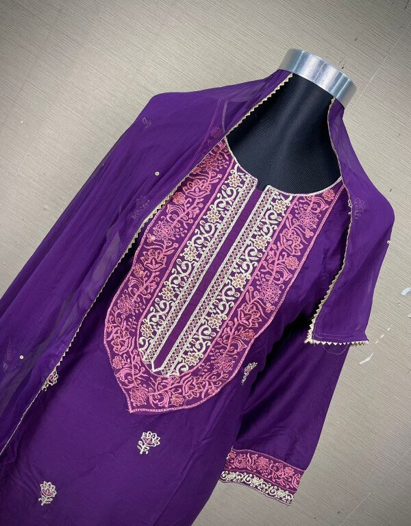 গলায় এবং বডিতে এম্ব্রয়ডারি কাজ করা ।100%কোয়ালিটি ড্রেস ।